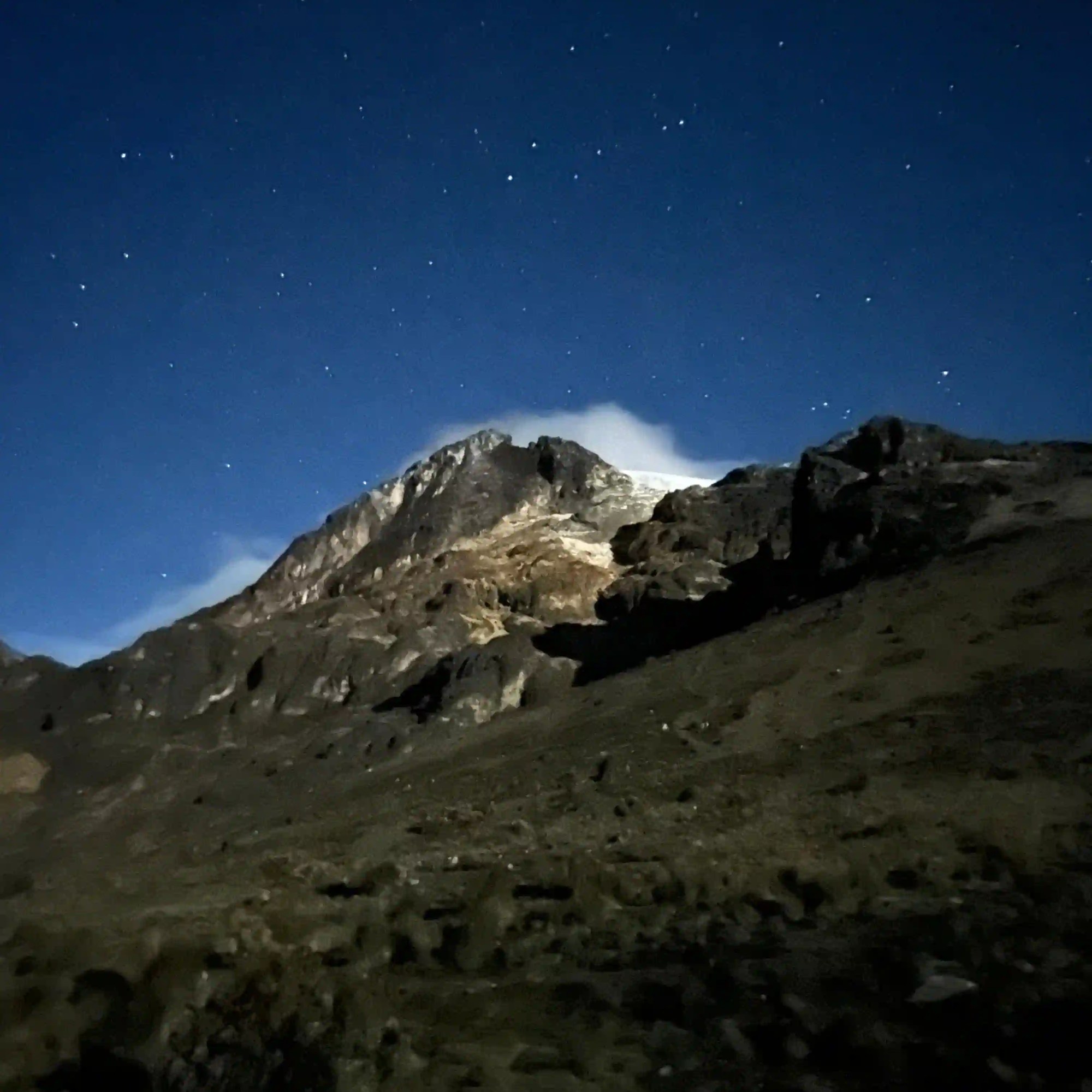 Nos levantamos tomamos algo caliente y salimos rumbo al glacial, en el camino, pasaremos por varios puntos clave: el Calvito, Arenales, Helipuerto, paso de roca, y luego intentaremos llegar a la cima, que se encuentra a 5,220 metros de altitud. El recorrido completo, ida y vuelta, se estima en unas 14 horas. Durante esta travesía, enfrentaremos tres secciones importantes: Una zona de arenas con fuerte inclinación que sirve como transición entre el ecosistema de superpáramo y la morrena glaciar.Terreno de rocas y en la ultima etapa al llegar al borde del glaciar, nos colocaremos el equipo necesario para ascender los últimos 200 metros de desnivel hasta alcanzar la cima.